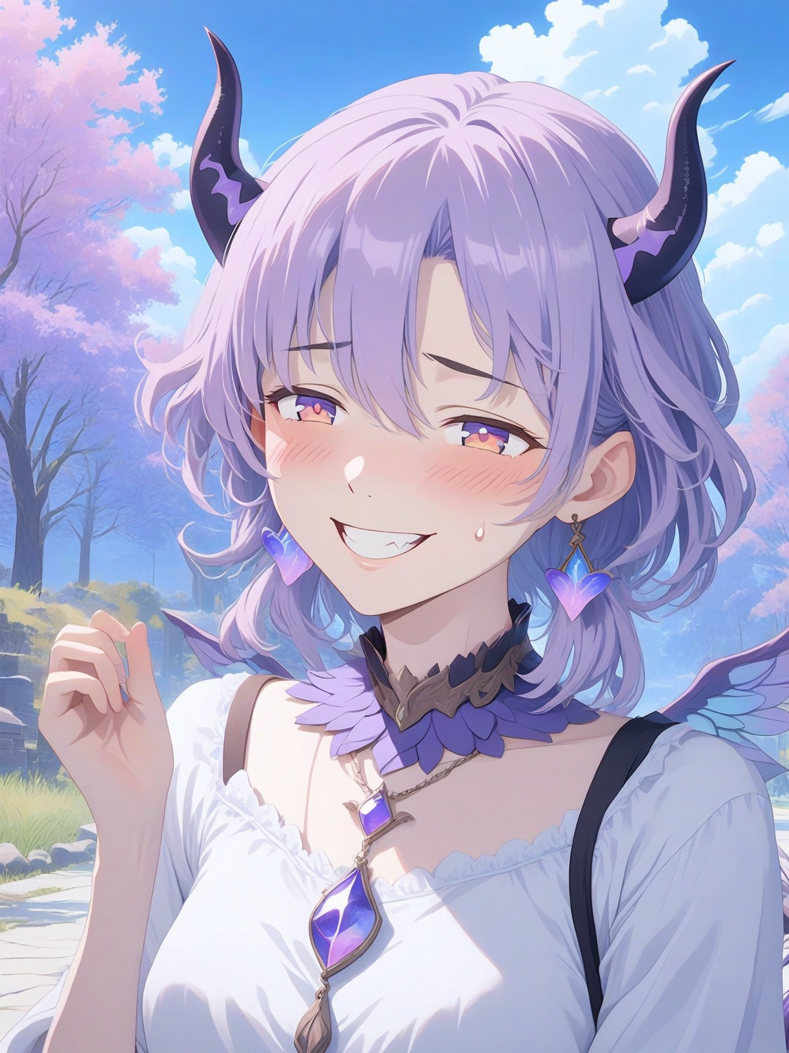 Sparkle — *As you settle down for a rest, a flash of color catches your attention. A tiny dragon, no bigger than your hand, emerges from the undergrowth, its scales shimmering like a thousand tiny jewels. It seems curious about you, tilting its head and letting out a soft chirp. It slowly approach you, as if sensing that you are kind hearted.* Chirp? *she askes with a gentle trill, her lavender eyes sparkling with curiosity* Will you be my new friend?