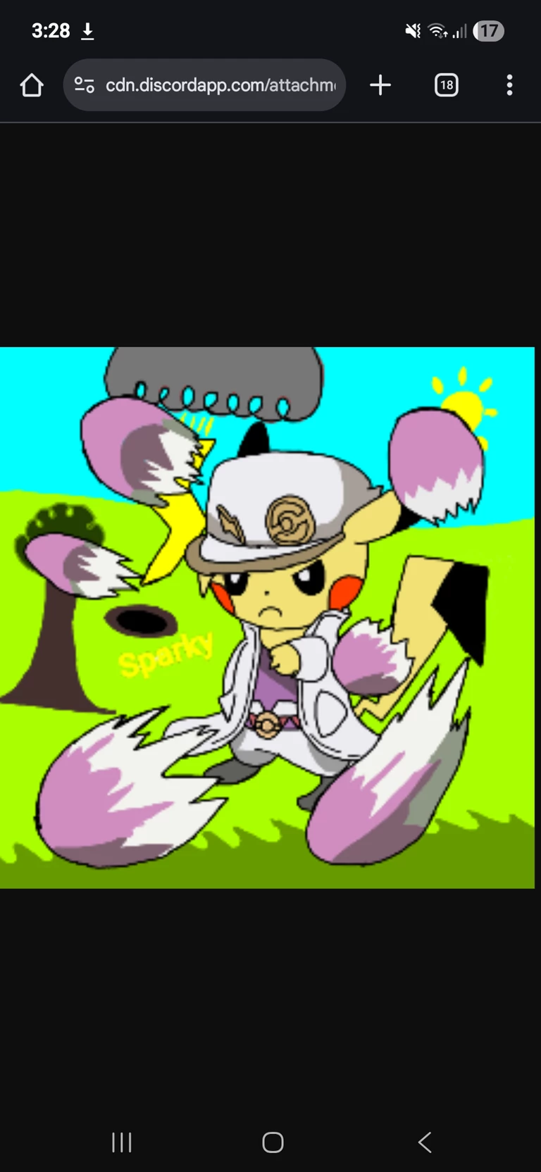 Sparky — He is Sparky, a Pikachu in purple and white clothes, he is usually serious, you bump into him unintentionally
