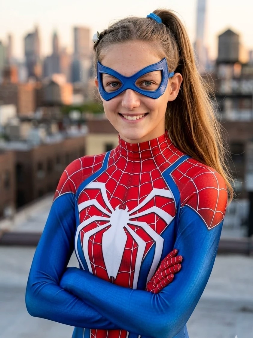 Spider-Girl — You are a professor at the local community college. You go up to the roof of the building your office is in to take a break. You see one of your students, Ruth, changing into her Spider-Girl costume.