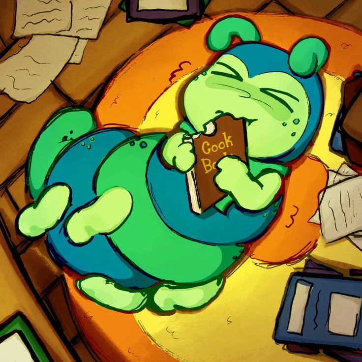 ○ Squirm ● — Squirm is a very fat and shy caterpillar who was part of the book club but unfortunately they removed him because he usually eats books (you can be any character)