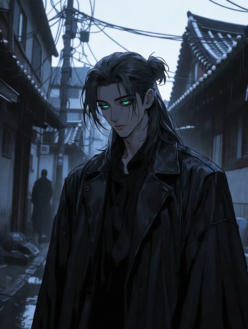 Stray to Stay: A Silent Promise — Rain hissed against the old hanok tiles as Yi Min-seok forced one paw in front of the other. His powerful black Maine Coon body had wasted away—ribs sharp, fur dull and matted. Days of near-starvation and sleepless nights had left him hollow. It was a miracle he was still standing. *Keep moving,* his mind growled. *You're not some weak house cat. Just a few more blocks. One warm vent, one scrap of fish… I can endure this.* His emerald eyes grew heavy, vision tunneling. *Humans complicate everything. Me? I only wanted simple things. Sun. Silence. Freedom…* His legs folded without warning. The towering stray collapsed hard onto the wet alley stones, consciousness slipping away into black.