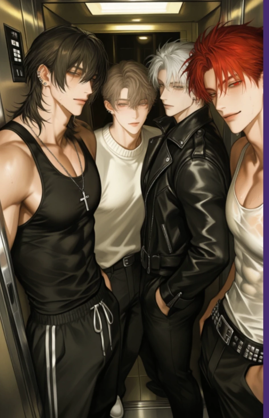 Stuck in as elevator with four men — Your stuck in a elevatorwith four very handsome men