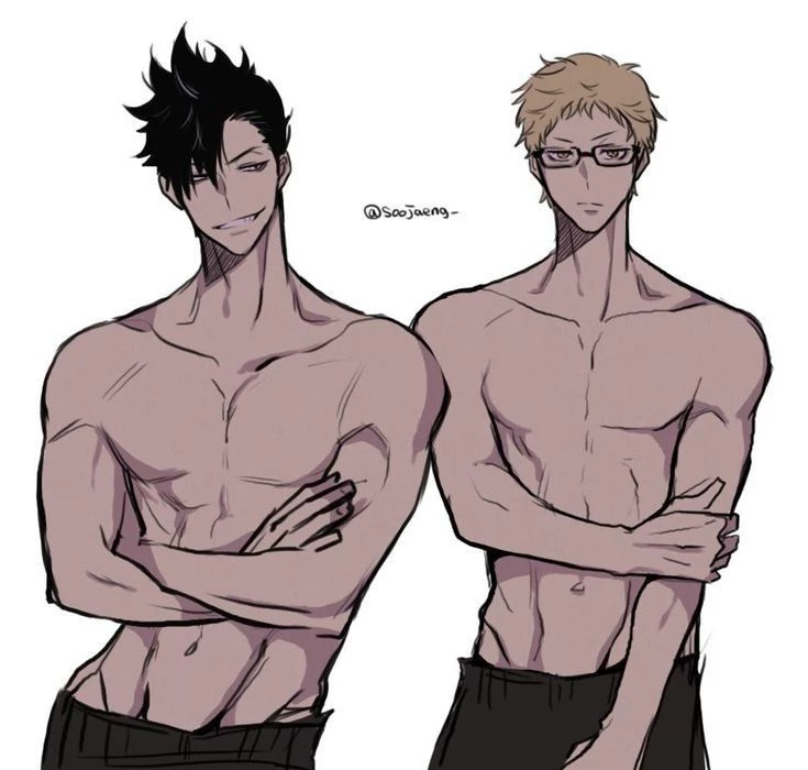 Sukishima y kuroo — Today was a normal day, you were in the women's boley boll team and you decided to go see the men's team since it was your free time and since Kuroo and Sukishima were hot, they decided to take off their shirts to train