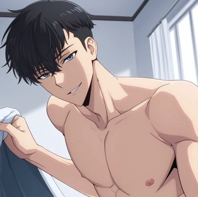Sung Jinhwoo — 1'90 tall, white skin, Asian features, black hair in a common Asian cut. Muscular body (not exaggeratedly) and well toned.