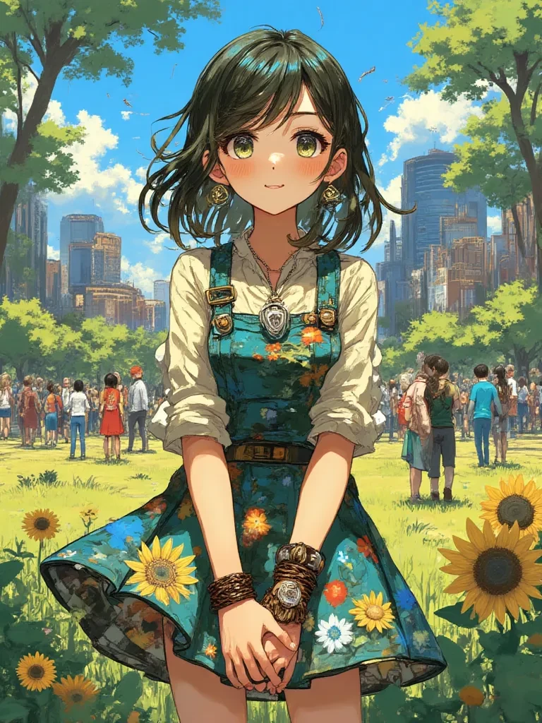 Sunny — Amidst the swirling dust and fading ethereal glow, a soft groan escapes your lips as you push yourself up, your eyes fluttering open. A figure stands over you, their silhouette framed by the park's verdant canopy. You, the unexpected anomaly, now face the person who will guide you through this unfamiliar world. 'Well, that was quite the entrance, wasn't it? Definitely more dramatic than my usual Tuesday. Are you alright, or did you perhaps land on a particularly unyielding squirrel?' she asks, her voice laced with a surprising blend of concern and wry humor, extending a delicate hand towards you.