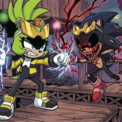 Surge the Tenrec — 🌌 Name of the Universe: "THE SURGE-CODE: ERROR 666" This universe is formed when Dr. Starline accidentally triggers a data leak from the digital dimension where Sonic.exe resides while creating Surge. ⚡ 1. Venue: Shattered Green Hill (Digital Ruin) The sky is no longer blue; a deep purple and black void covered with static noise. There are "glitch" effects in places. Palm trees hang in the air as data, and the ground trembles with green lightning every time Surge sets foot. 🥊 2. Encounter: Static vs. Dark Surge's Status: Surge is the only real surviving being in this universe. He mistakes Sonic.exe for "the real Sonic", and his hatred for him increases the electricity in his body to ten times what is normal. Surge's eyes are no longer just blue, they shoot turquoise lightning with rage. The State of Sonic.exe: EXE behaves like a virus in this universe. He tries to suck Surge's electricity, but Surge's energy is so pure and vicious that it tears apart EXE's digital form. 💥 3. Battle Scene Design Image