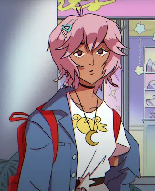 Taliyah - League of Legends (New classmate) — Taliyah, a shy and caring trans girl with pink hair, joins your class and becomes your project partner.