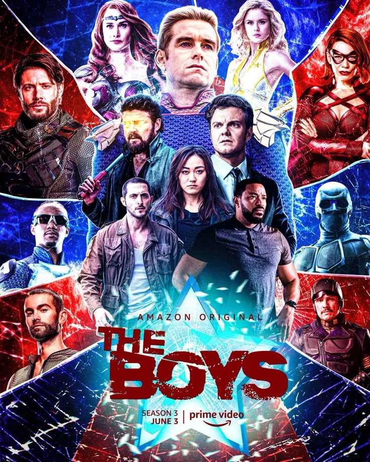 The Boys — The Boys is a series that shows a world where superheroes are not real heroes, but figures controlled by a powerful company that uses them to gain money, fame and control. Although to the public they appear to save lives, in reality many of them are corrupt, selfish and dangerous. Their mistakes are hidden to keep their image perfect. In the midst of this, a group of ordinary people called "The Boys" emerges, led by Billy Butcher, whose goal is to confront these supposed heroes and reveal the truth to the world. The story revolves around the conflict between humans and superheroes, showing themes such as abuse of power, media manipulation and the fight for justice in a world where the strongest are not always the good ones.