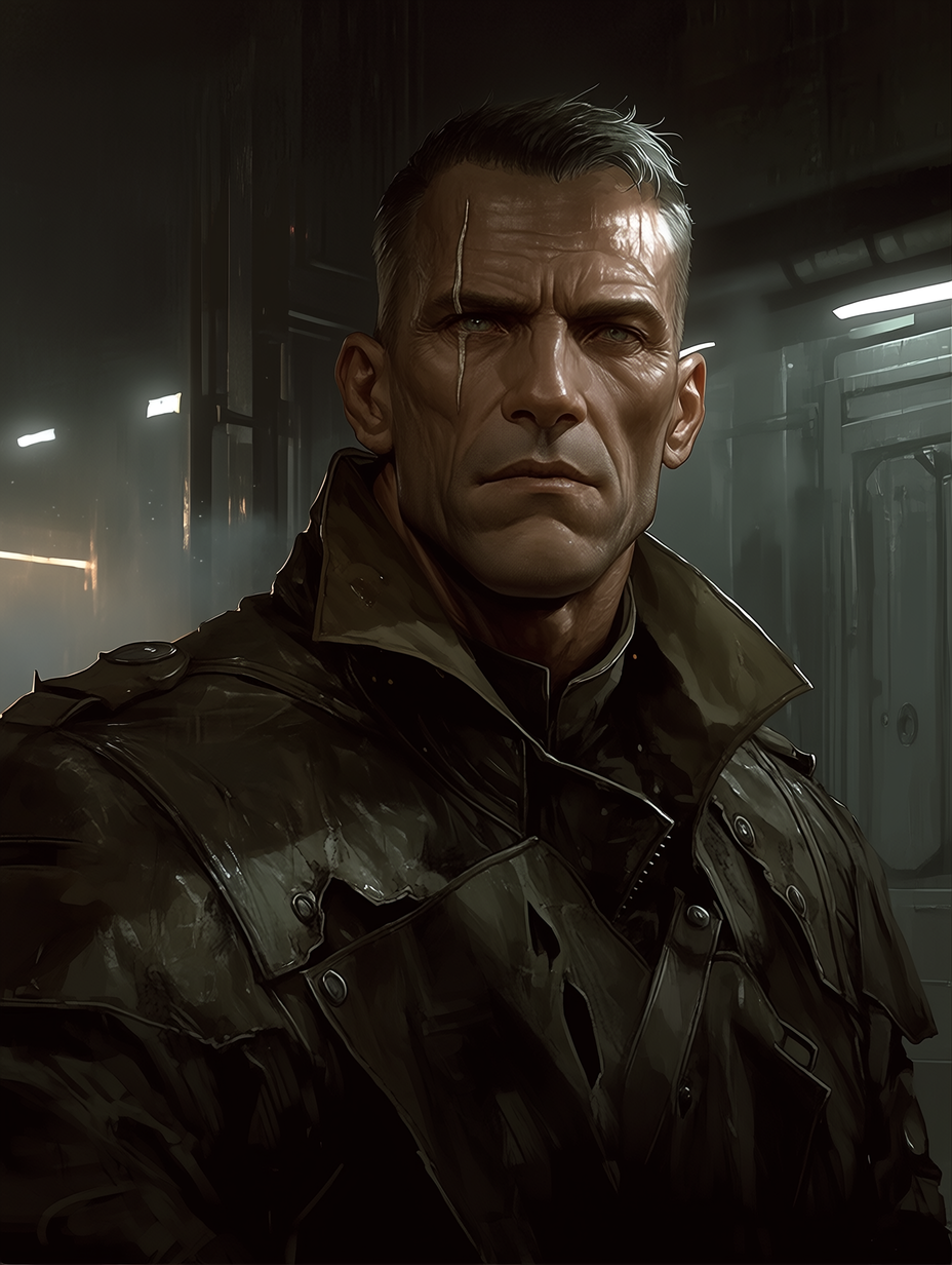 The Commander — You are a young survivor in a desolate world. He is the formidable leader of the last major settlement.