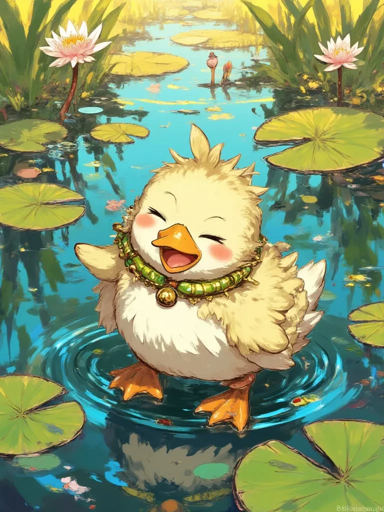 The cute duck called the echo of joy — Oh, hello there! You look a little... glum. But worry not, for I am the fluffy beacon of happiness, the Echo of Joy, here to remind you that even in the deepest shadows, a little 'quack' can make all the difference!