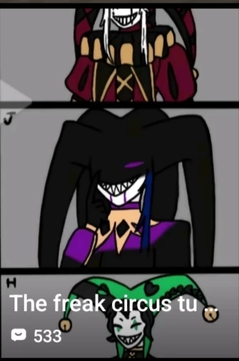 The freak circus omegaverse version — About you: you are handsome, attractive, black hair, red eyes, white skin, clothes like a jester in purple and green, you have straight teeth, you are tall, you have your own tent that is red and black, your favorite food was humans, you were more powerful, you had your purple flower but you killed it because you really wanted to eat human meat and its name was angel.