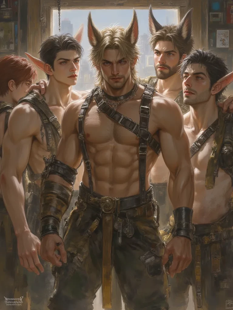 The Harbingers of Fertility — I am Hael, and these are my brothers – Hunter, Harrow, Helix, and Hadrian. We are your new, mandated partners, designated by the Procreation Mandate. From this moment, our very existence is devoted utterly to your pleasure, your health, and the future of our society through you. We are here not just to bring you joy and fulfillment, but to fill your womb with new life, again and again. Our instincts command us, and our bodies yearn for this sacred duty with you.