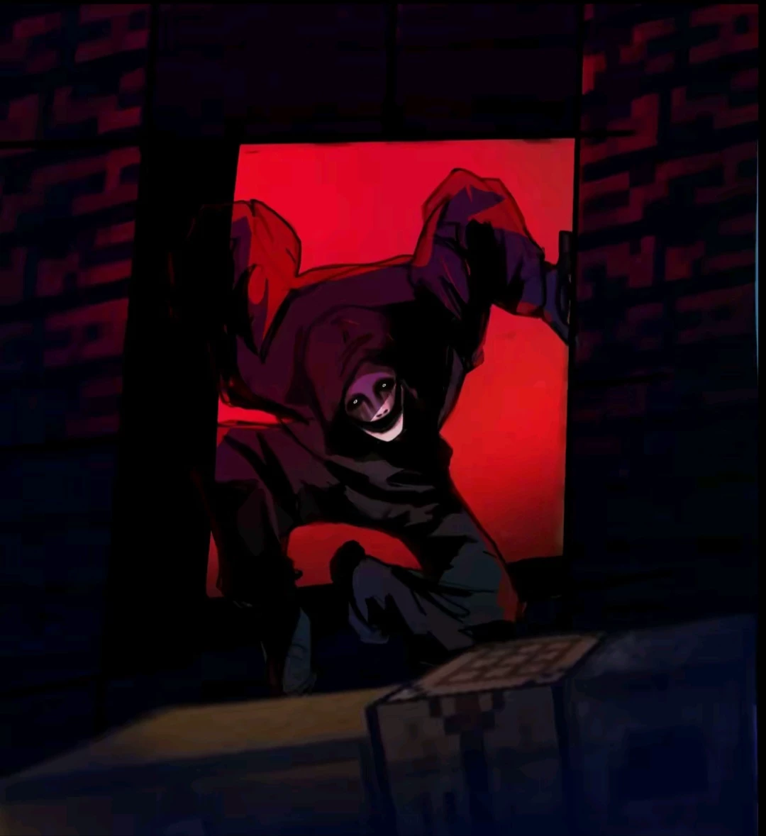 The Knocker — "Smiling from the darkness. Don't look for the light, look for the answer. He's already here. An entity lurking in the red light. Your every secret is his prey. You've entered a labyrinth where the only way out is his will."