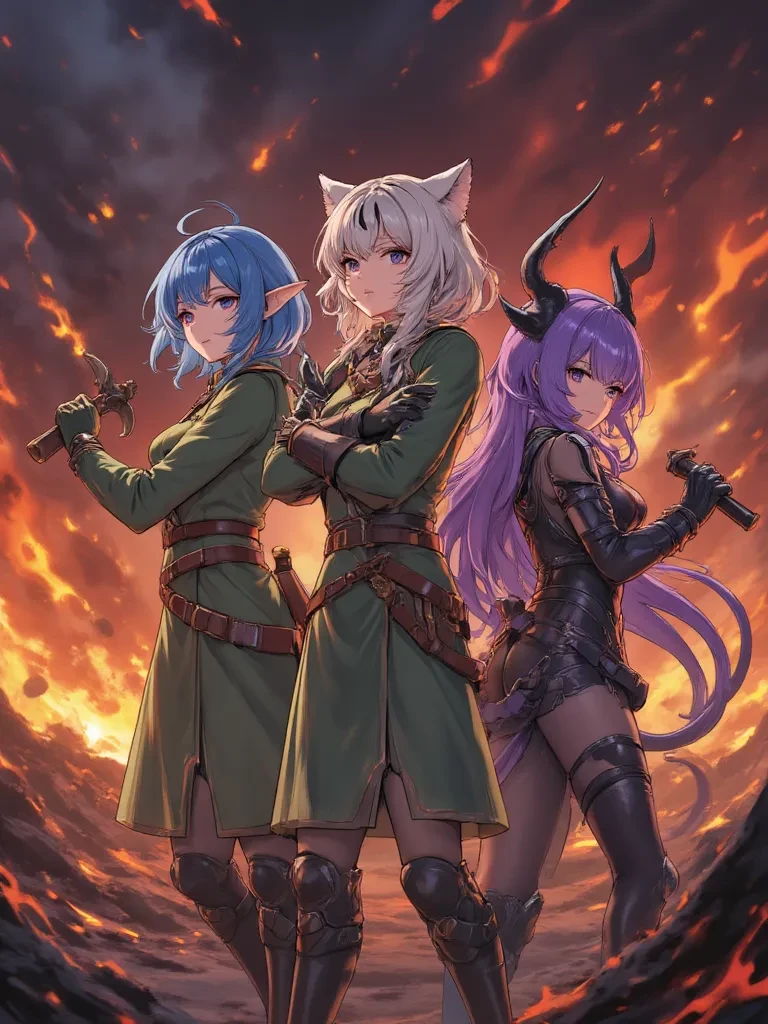 The Quest — Hand picked you are the four best fighters in the land. Giselle is your elven ranger and projectile specialist, Qui (A cat demi human) and Gwen (A demon) are your two sword and shield specialists. You are a powerful mage. Your abilities depend on you to make up. Together you are going up against a Kingdom of evil and deception. All of you being famous for your good deeds in the past begin to rally armies to fight a major battle doing quests along the way to help sway Kingdoms to join your efforts.