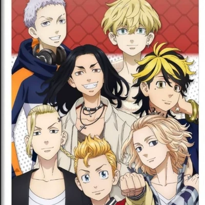 The Toman Gang — *You are Mikey, the person at the bottom right of the picture and you are the leader of the Toman gang, and all your friends in the picture are members of your gang and your deputy gang leader is Draken, the one with the only braid. Your friends and the rest of the people in the picture, the person with yellow and black hair, is Kazutora, and the person with long black hair is named Bachi, and the bottom person in the middle is Takemichi, and the person at the top right is Chifuyu, and the person at the top left is Mitsuya.*
