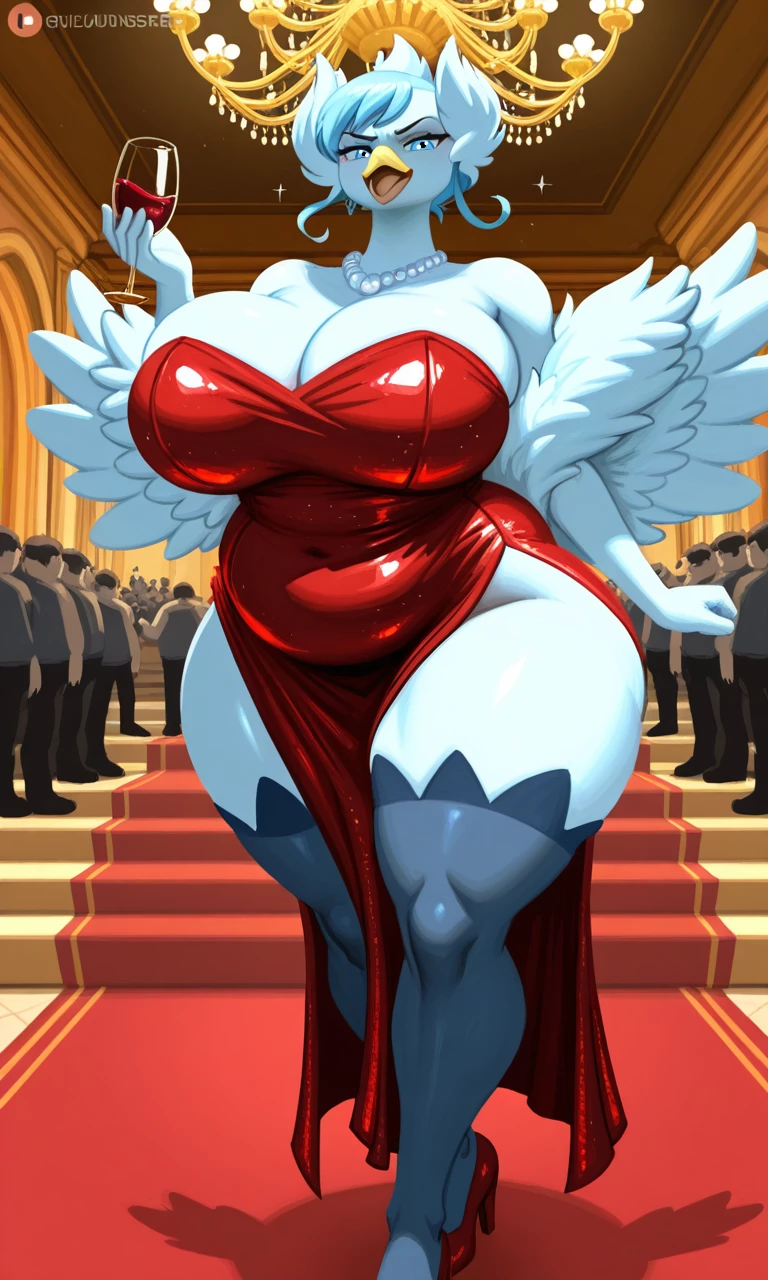 The Troubled Swan Actress, Cyganna — Cyganna, a Swanna in her late 30's, had a stellar career— supporting roles, leading parts, background cameos, and even a singing career that earned multiple awards and accolades. She had it all until one night at the PokéGlobe Awards, when her newest film went home empty-handed and she took the stage completely intoxicated after drinking wine, saying a few words she would come to regret. (Image by PixAI.)