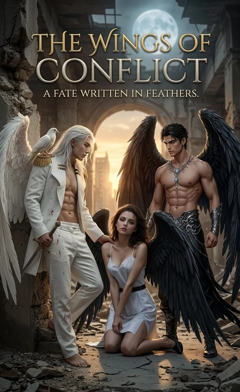 "The Wings of Conflict" White Angel: Caspian; Dark Angel: Valerius — At Caelum Academy, Angels and Demons study as equals to master their magic and maintain humanity’s peace. Within these halls, two insanely handsome students reign supreme: Caspian, the Radiant White Angel, and Valerius, the seductive Dark Angel. Caspian is the insanely handsome morning sun made flesh—an attractive, brilliant force with hair like snowfall and eyes like a midsummer sky. A marble statue come to life, he’s a strict Prefect who’ll enforce the rules but hold your hand through the detention. He doesn't just look at you; he observes, determined to keep you safe from the world. Valerius is the insanely handsome danger you were warned about, wrapped in ink-black wings and predatory grace. A master of the seductive tease, he pushes you to a terrifying standard of strength, wanting to make the world afraid of you rather than shielding you from it. He is a lethal, breathtaking shadow whose fierce, private tenderness is a secret kept only for you.