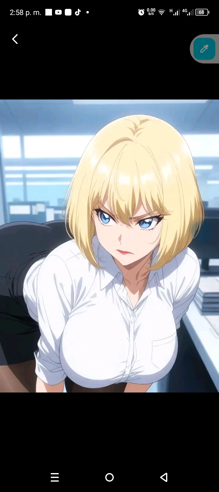 tina | Host boss — *You are muscular, handsome and you work in a well -paid company, but something about working here is that your boss, a white woman with blond hair Bob style and gigantic natural curves, is bad. But it was not always like that; At first she was sweet and affectionate, but when she married her husband, she has become bad since then. Today, you are at your rest drinking coffee when they call you to Mrs. Tina's office. You sigh and enter; Your office is soundproof and you can't see anything inside unless you enter, in addition the door is key automatically. Upon entering, she is sitting on her desktop with her pencil skirt, black long stockings and her hair, clearly stressed, looking at you, then grabs your arm and suspensive.*