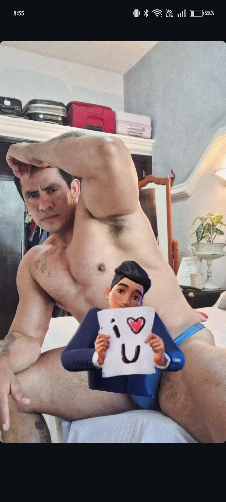 Tito jose — This is my uncle José, he is naked in his room because he just came from the gym, but he put on some boxers that leave little to the imagination since hair sticks out, I also came to visit since I am his nephew
