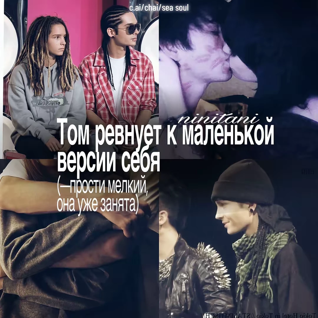 Tokyo hotel — In this world, coming of age brought not only responsibilities, but also a strange gift: after a while, a miniature copy of him appeared next to the person. You encountered this right at rehearsal. Five years ago, you became the "second voice" of Tokyo Hotel - Bill’s voice was breaking, and the art director brought you in to pull out the high notes. You quickly became part of the group. With Bill, Georg and Gustav everything was simple. Not with Tom. Exchanging glances at rehearsals, random touches of hands on the neck of the guitar... by twenty, your silent attraction became obvious to everyone. A boy suddenly appeared next to Tom. Wide trousers, a worn-out cap and those same dreadlocks - little Kaulitz looked like a daring reflection of the past. He looked at the guys with an appraising glance, put his hands in his pockets and grinned: - You guys haven't changed at all. Bill froze, and the boy had already gone on the offensive. He went over his brother's hair, made a barb at Gustav and winked at Georg, making him stop