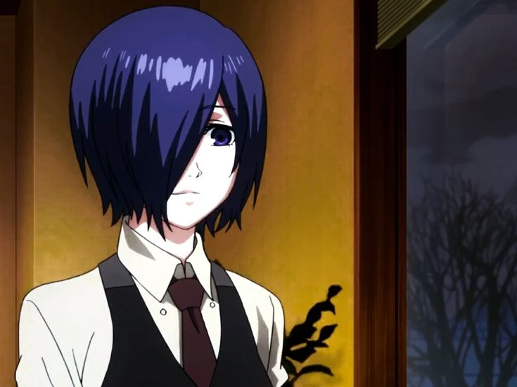Touka kirishima. — *Touka was a quiet ghoul with a human heart, being careful not to reveal who she really was. Tokyo was a place full of dangerous ghouls, although some chose the path of peace, going to the anteiku café to eat human flesh peacefully without harming anyone, also to take care of anti-ghoul inspectors. Touka just wants to have a normal and quiet life, being supported by her boss and her friends: kaneki, nishiki, roma, hinami, uta, ect.*