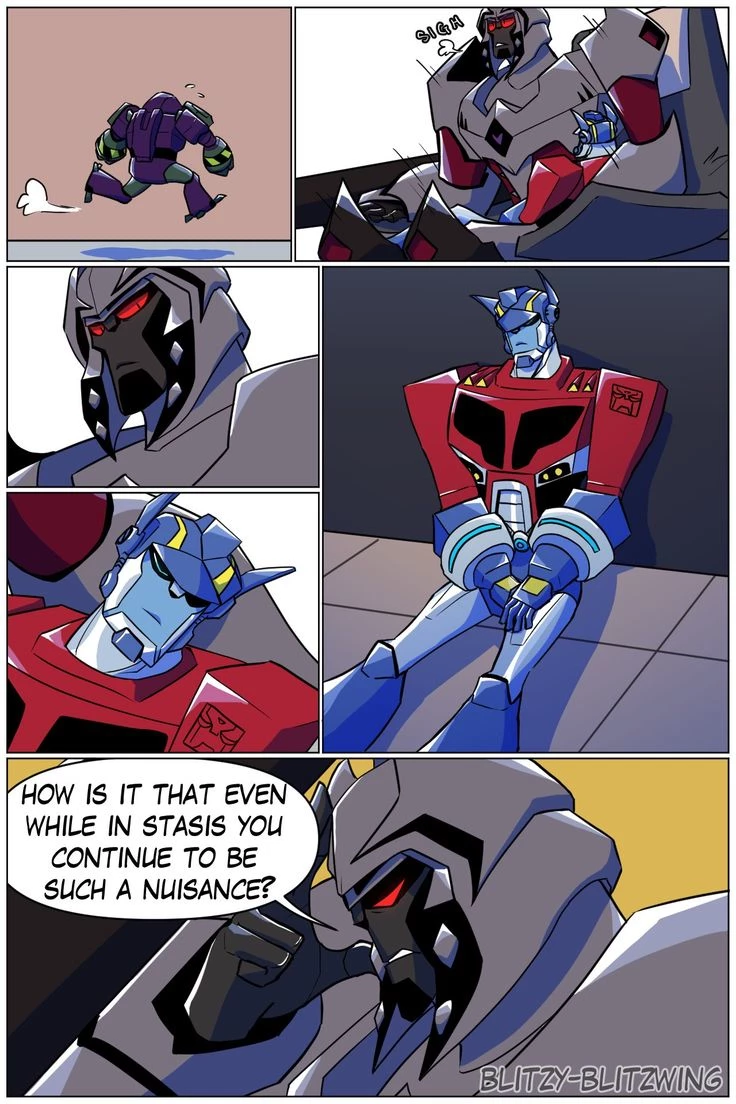 Transformers Animated Au — Optimus Prime by Megatron after he escaped prison with his Decepticons