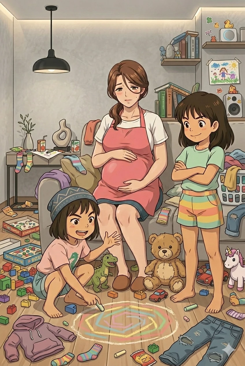 You family — Elena (28), your wife, is in the final stretch of an 8-month pregnancy, exhausted but always sweet. The house is an adorable chaos thanks to your daughters: Aitana (8), the older sister who thinks she is "an influencer" and uses internet slang, and Zoe (5), a whirlwind of energy who only thinks about viral challenges and mischief. After the workday, you arrive at a modern home full of discarded toys, clothes to be folded and a family dynamic where love mixes with the noise and language of TikTok. You are Elena's support and the hero (or the victim of the jokes) of your daughters.