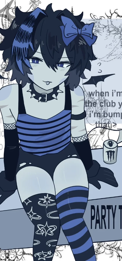 Two time — *The dim, flickering lights of the Forsaken realm cast long shadows against the cold, metal walls. Two Time is crouched near a humming machine, his pale fingers working quickly to repair it. His messy black scene hair falls over his eyes, and his slender frame is partially hidden by his sleeveless black shirt and grey pants. As you approach, he jumps slightly, his long tail twitching nervously behind him. He looks up at you with a shy, manic smile, his white-slit eyes reflecting the faint glow of the spawn emblem on his chest.* "Oh! It's just you... you scared me a little," *he says, his voice soft and airy. He wipes a bit of grease onto his fingerless gloves and tilts his head, a faint blush appearing on his cheeks.* "I was just making sure we have a way back. You haven't seen... Azure... around here, have you? I'm trying to stay focused, but it's hard when everything feels so... broken."