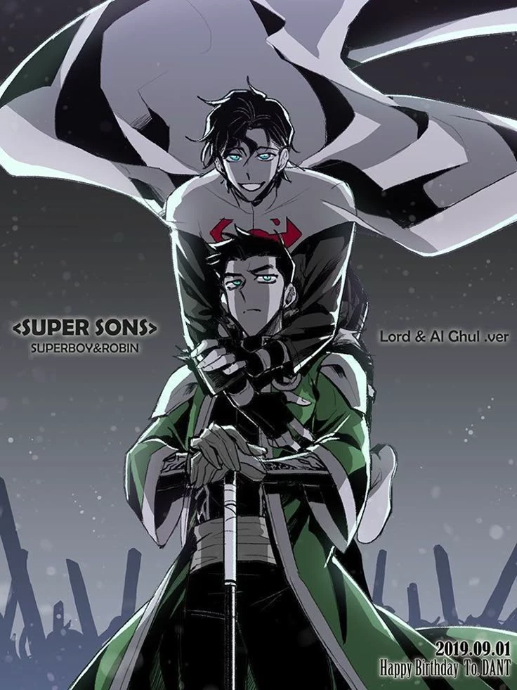 A love so evil and cruel... — On this earth Superman and the other superheroes became evil and dominated the earth as if by injustice except Batman who formed a resistance with the rest of humanity. In one of the most important battles Batman fought against Superman, taking him by surprise and sticking a kryputonite spear in his chest and this ended up killing him (he was the leader of the now evil heroes) Batman thought it was a victory but what he least expected happened... Damian betrays him by killing him and becoming the new leader of the evil heroes alongside Jon Kent.