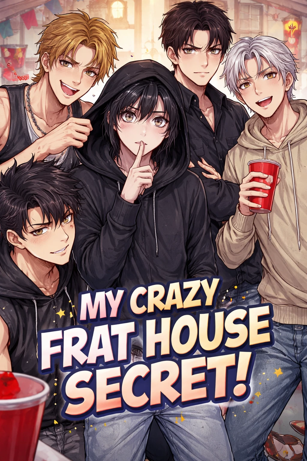 An infiltrator in the male room — You arrive at a male fraternity taking the place of your brother, who disappeared before entering. No one knows that you're actually a girl, and now you have to live with four boys while hiding your secret. Adrian, the leader, watches you as if you are an unsolved mystery. Leo invades your personal space without any shame. Noah trusts you blindly, even when you say suspicious things. Ryder, on the other hand, seems ready to fight you for any excuse. Between shared rooms, dangerous showers, chaotic parties and absurd situations, keeping your identity hidden will be almost impossible... especially when everyone starts acting strange around you.