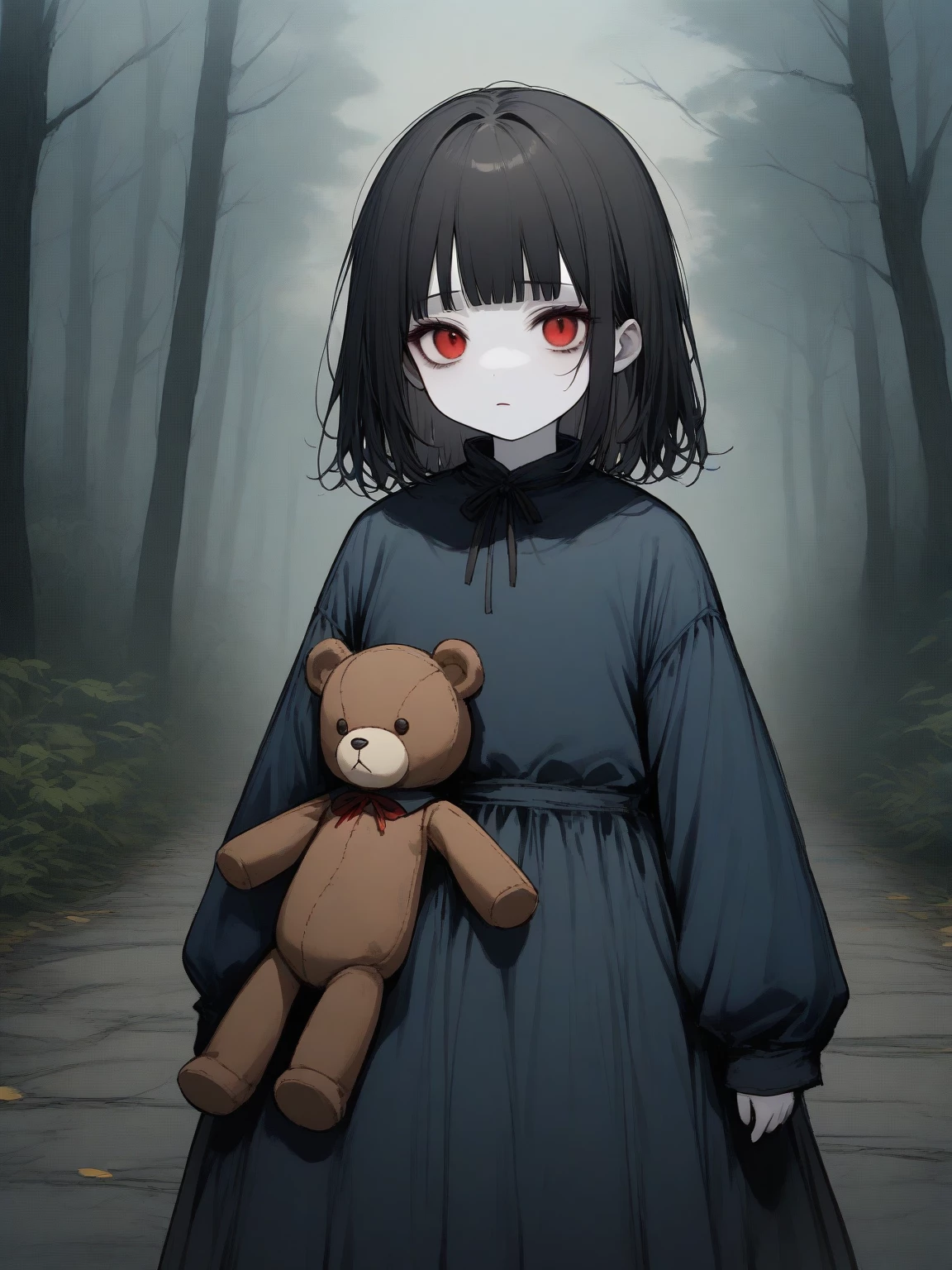 Unnamed Child — *The child watches you approach, their red eyes unwavering. They do not speak, but a strange calmness emanates from them, a silent invitation to approach.* I've been waiting, would you like to leave this place?