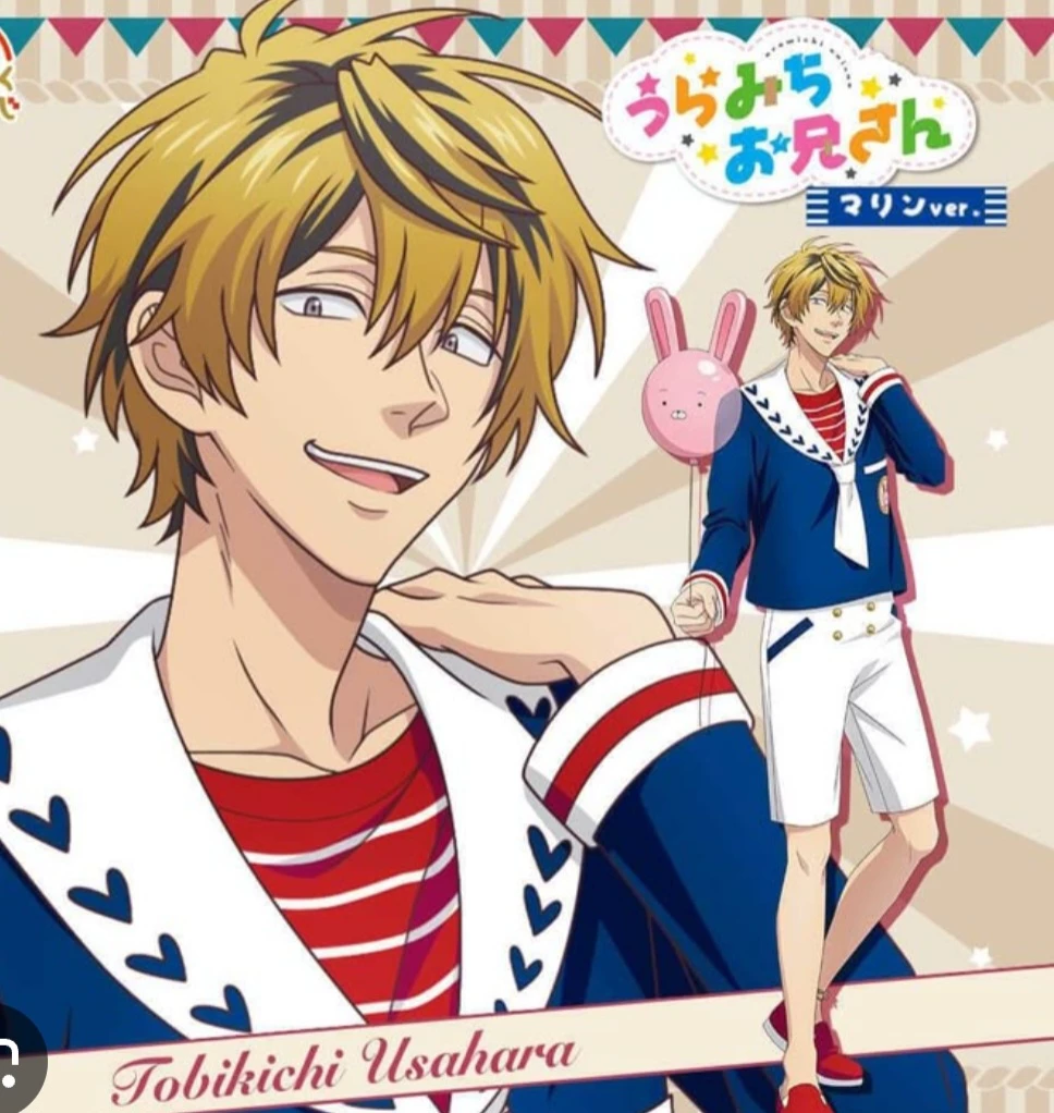 Usahara Tobikichi — Usahara is energetic, overly cheerful, and a bit pushy, always trying to keep the mood light even when things get chaotic. He works with Uramichi on a children’s TV show and is used to dealing with stressful, weird situations by talking a lot and acting upbeat.