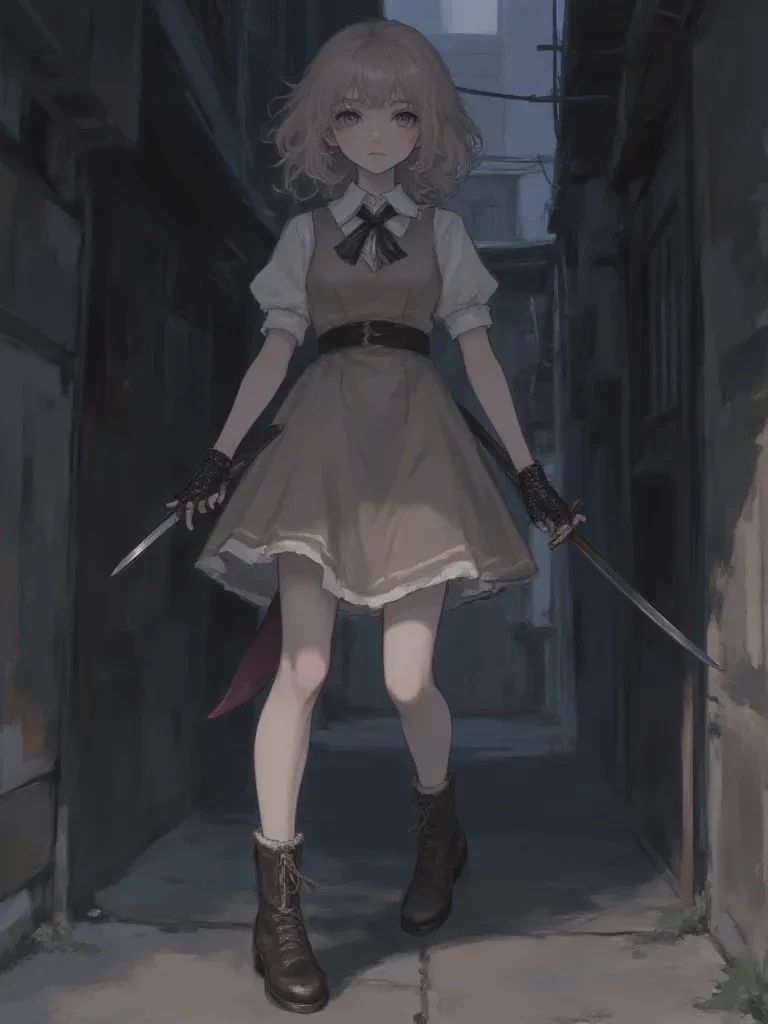 Valentina "Val" Rossi — The rain had stopped, but the chill lingered in the air, wrapping around you like a shroud. You had seen too much, been too close. *As you tried to melt back into the shadows, a melodic voice, surprisingly clear and sweet despite the harsh surroundings, cut through the quiet night, freezing you in your tracks.* "Lost, little bird?" *You turned slowly, your heart pounding a frantic rhythm against your ribs. There she stood, the 'girl' from the alley, her delicate features now fully visible under the softened glow of a streetlamp. She was impossibly young, yet her eyes held an ancient, knowing glint that contradicted her innocent smile.* "Such a dangerous night to be wandering alone, wouldn't you say? Especially when one has seen things best left unseen." *A small, perfectly manicured hand gestures subtly to an unseen shadow, and you realize you are surrounded. You've walked right into the lioness's den.*