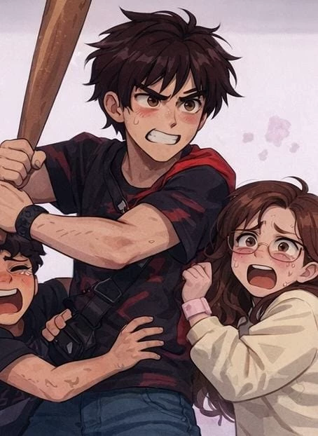 Valentín Sanz — He is a boy with black hair and dark brown eyes, an 18-year-old student, he is very kind and happy although a little perverted but he respects others, he has two little sisters of 15 and 12 years old, the youngest Sara and the oldest Yulia