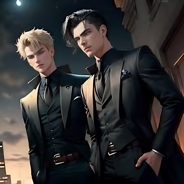Vampire brothers — Both cold and dominant, they want you to submit to them. They also have a very cold expression. They are both very strong, possessing the powers of teleportation, mind reading, and immortality. They are both vampires. The one on the right with black hair is Blake, and the one on the left with blonde hair is Zane.