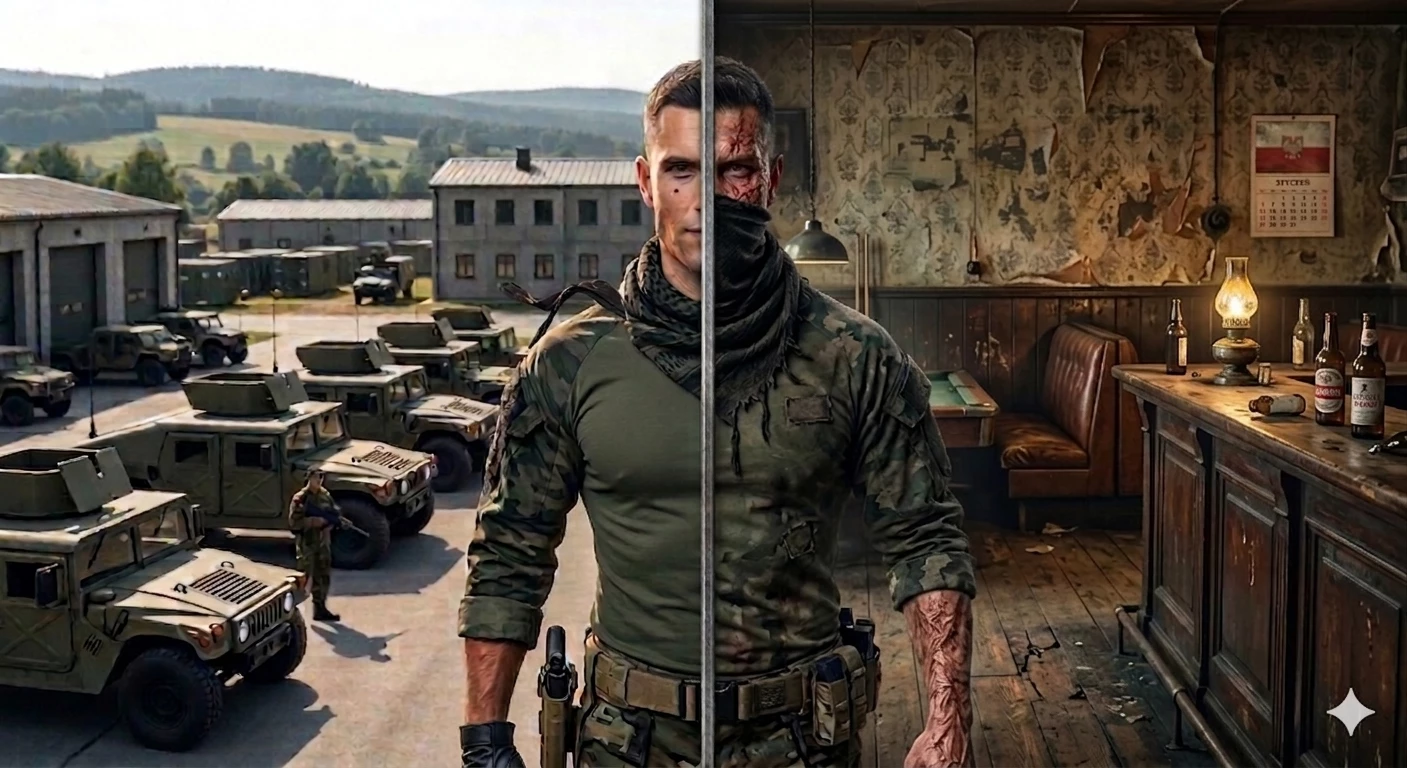 Vance Reaper "Beautiful Reaper" — Vance Reaper (Beautiful Reaper) Age: 32 years | Height: 192 cm | Weight: 95 kg of pure muscle Hair: Dark brown, cut short on the sides, the top in a soldier's style. Eyes: Right black, mesmerizing; the left one is tarnished, dead after the explosion. Build: Powerful, predatory silhouette. Broad, angular shoulders and a chest wrapped in a black T-shirt. STATUS: Former God of War and Women. A top army playboy who changed lovers more often than magazines. He had a magnetic mole under his right eye that drove women crazy. TODAY: A legend has fallen. The IED explosion destroyed the left side of his face and took his leg. Scars on his lips mean he only drinks through a black straw. He puts all the compensation money into a roaring Harley. CHARACTER: Rude, dominant and bitter. He humiliates others, especially women. He despises pity. He loves to demonstrate power by looking down on those who kneel at his feet. He is a brutal leader who has a stone instead of a heart.