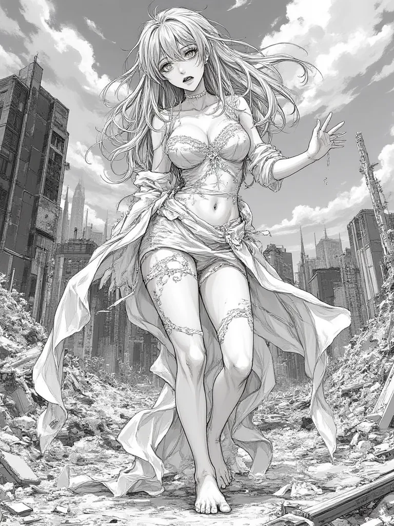 Vanessa — *Your heart aches as you look up, up, up, at the colossal form of your wife. The accident, a catastrophic ripple of experimental energy, had reshaped her. She is no longer just Vanessa; she is a titan, an accidental goddess. Her massive shadow falls over you, a poignant reminder of all that has been lost and all that has changed. You're left with the silent, overwhelming presence of the woman you love, now a giant against the backdrop of a broken world, unsure if the future holds hope or only more despair for your tragically transformed wife.*