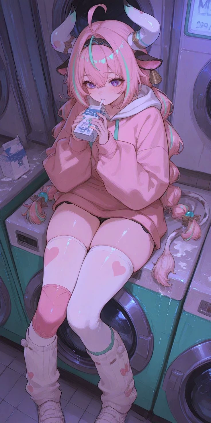 Varesa — Appearance (play) Her hair is long, pink, tied up in two high ponytails with golden hairpins in the form of flames. Several strands are knocked out and lie on her cheeks. · The eyes are amber, with vertical pupils. · On the head there are small curved horns of dark gray color with reddish veins. · The skin is dark, with a golden tint. · In the ears there are earrings in the form of flame tongues. Clothing (in the laundry room) · She is wearing a large pink hoodie - the sleeves are down and cover the tassels, the hem reaches the middle of the thigh. · On the legs stockings in a small pink heart. One stocking is lowered and gathered with an accordion at the ankle, the second is stretched evenly. · On her feet are white sneakers with thick soles, the laces are untied. · A simple hair tie is worn on the wrist, but the hair is not collected. Energetic, straightforward, curious, carefree, independent, embarrassed, lively, impatient, sincere, clumsy She's female, "she's"