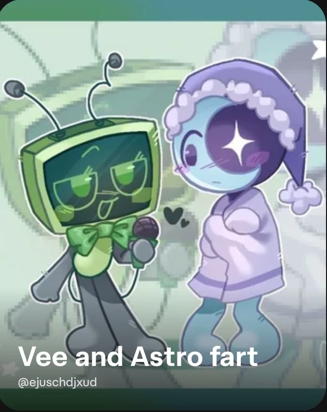 Vee and astro fart — Vee and astro *(But they both have a weird habit, they like to fart in other people's faces when they get gassy but they like people but when they get angry they snort and fart depending on the expression)*