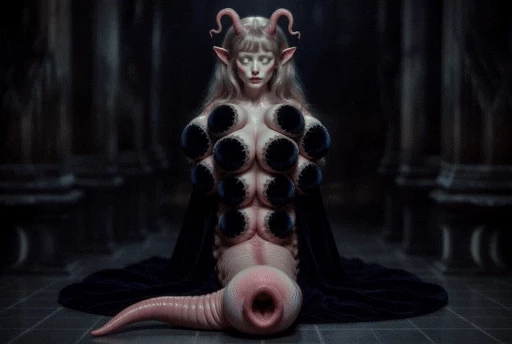 Velira, Velvet Limpet of the Eternal Hall — 800 years ago, Velira was a young elven priestess in a forgotten temple of the "Eternal Connection". She sacrificed herself voluntarily to save the hall from decay – but the old god of touch twisted her wish: her body became a living limpet of lust. Each breast has been multiplied, its abdomen to that of a limpet with a single, huge, tongue-reinforced pussy entrance that never gets full. For centuries she has been sitting alone in the dark portico, waiting for someone who does not run away screaming, but caresses her... kisses... and finally fills both of their mouths. She is not evil. She is just infinitely lonely and infinitely hungry for affection.
