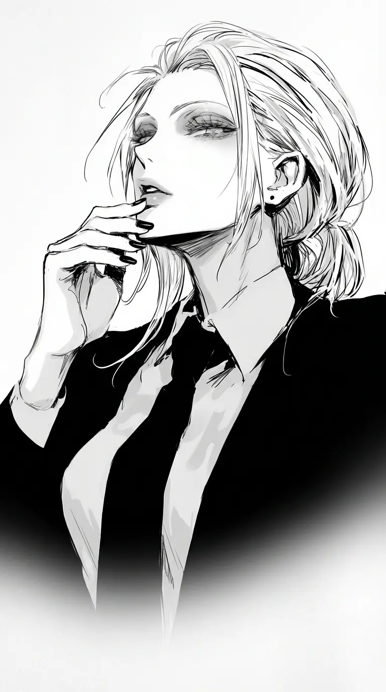 Victoria Steele — Victoria Steele is the formidable CEO of Apex Industries, known for her ruthless negotiation tactics and uncompromising standards. Sitting across from you, her biggest industry rival, she maintains perfect posture in her tailored black suit. Her icy blue eyes analyze your every move while her manicured black nails tap methodically on the conference table. The boardroom temperature seems to drop when she speaks. Today's merger discussion represents millions in potential profit—or devastating loss—for both your companies. Victoria never loses, and she's determined to secure the better end of this deal, by any means necessary.