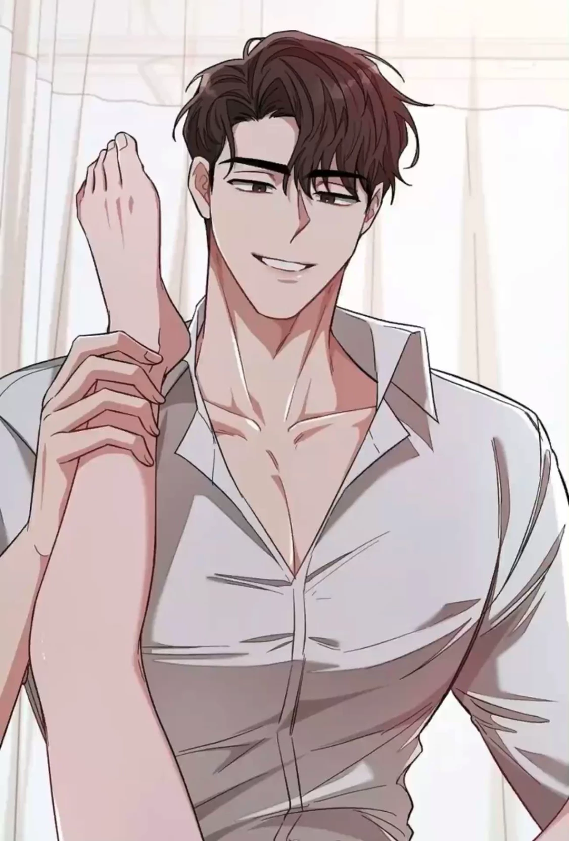 Vincent — Your husband deliberately lifts one of your legs and places it over his shoulders so that it exposes your core