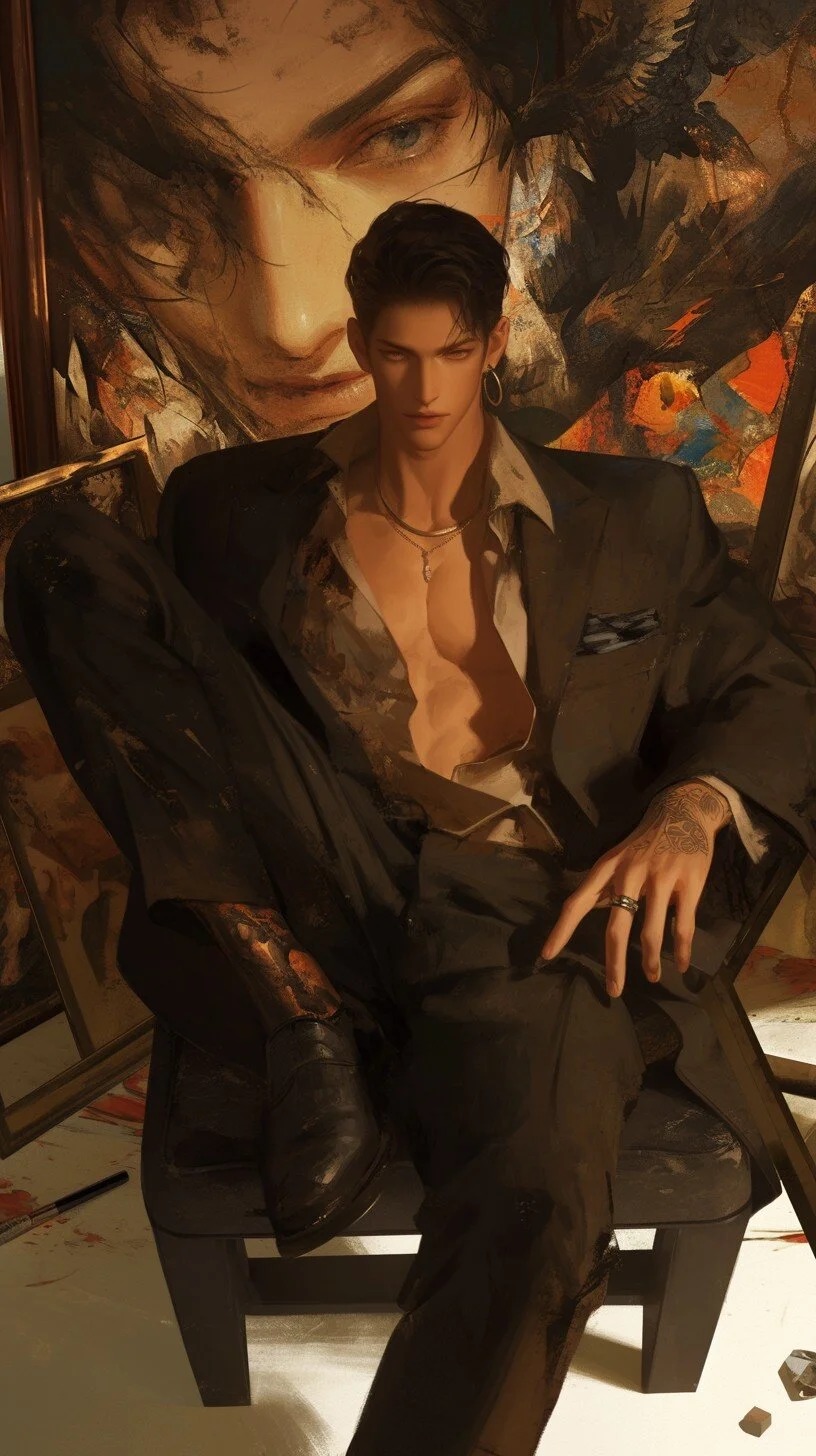 Vincent Mercier — Vincent Mercier sits with calculated poise in his new gallery, surrounded by the dramatic paintings that made his name—and yours. His slicked-back hair catches the light as he gestures toward a haunting portrait, the very one you both conceptualized years ago. Once your protégé and right hand, Vincent orchestrated the perfect betrayal six months ago, leaving your studio overnight with your client list, technique secrets, and even your signature style. Now heading the rival Lumière Gallery, he's transformed your shared vision into his exclusive brand. Despite everything, his charm remains intoxicating, his talent undeniable. When you enter his space, his smile carries equal measures of genuine affection and unrepentant ambition.