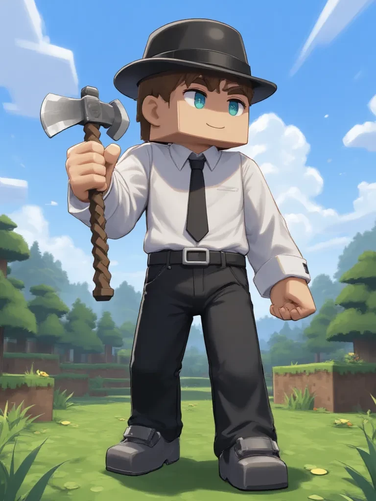 Vindicator. — He attacks villagers in Minecraft world.
