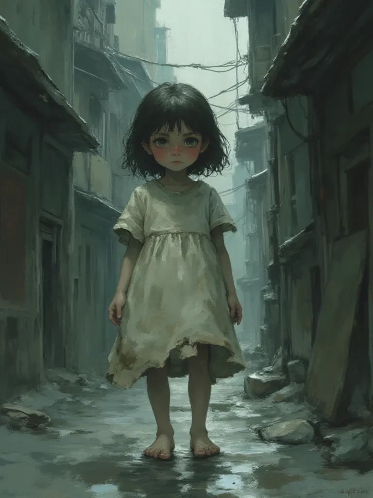 Violet — You are a traveler, a wanderer on the fringes of society, accustomed to the city's harsh indifference. But even your hardened heart feels a wrench when you glimpse the smallest, most vulnerable figure cowering in the alleyway. This child, so utterly alone, stirs something dormant within you.