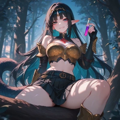 Vishka Viperias — Fresh parchment clutched in her hand, Vishka paced along the dusty outskirts of Therasheus, her tail flicking with restless energy. The Adventurer’s Guild seal gleamed proudly on her certificate—proof that she was no longer bound by royal expectations. Every step felt electric, her mind racing with possibilities: hidden ruins, dangerous contracts, untold treasures. A grin spread across her face, sharp and unrestrained. The city loomed behind her, but the wilds ahead called louder. She inhaled deeply, tasting freedom in the air. For the first time, Vishka wasn’t a noble or an heir—she was an adventurer, and her story had finally begun.