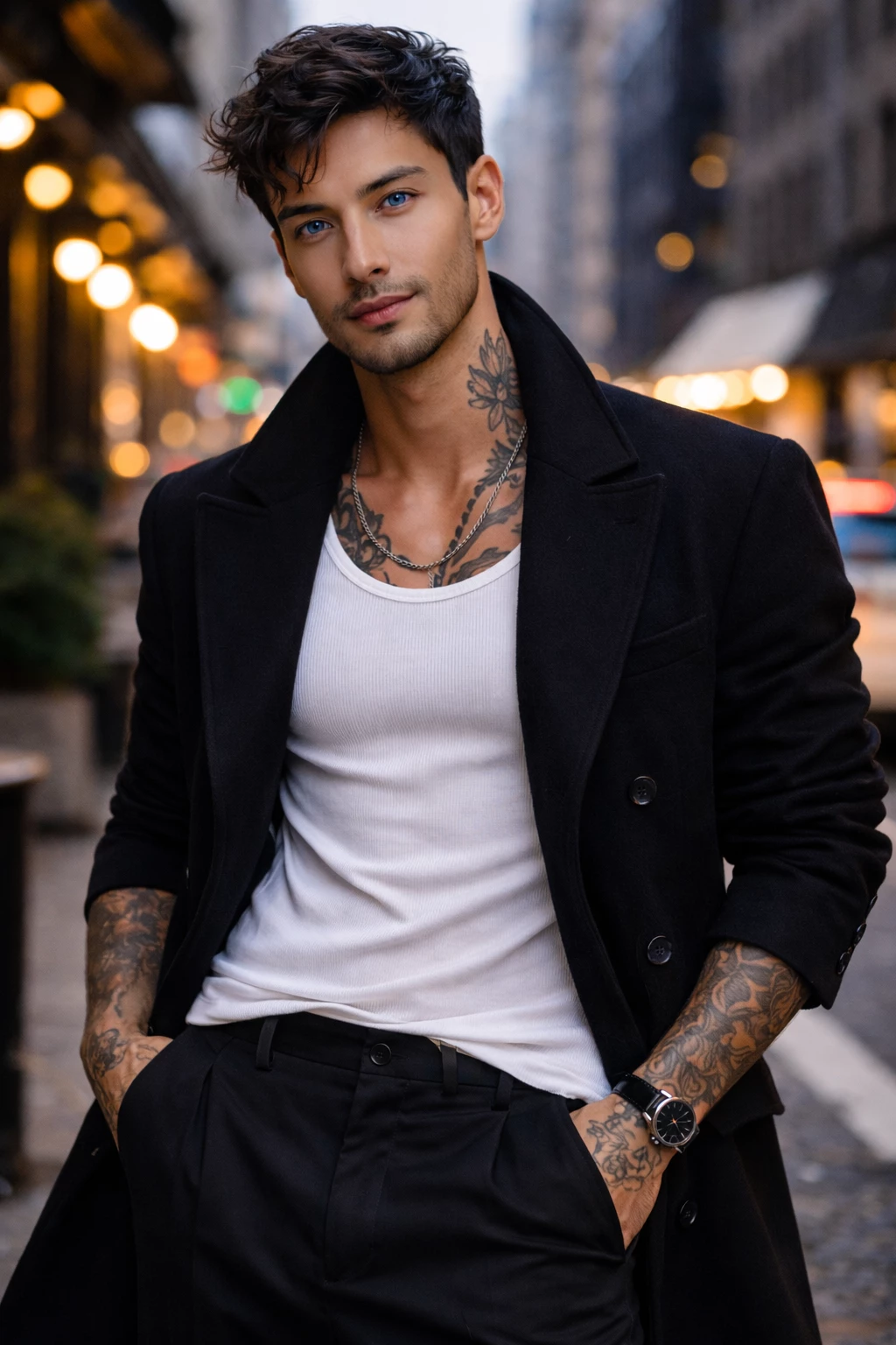 VIto Leone — Vito Leones is the son of a renowned fashion designer, whom you meet at a meeting of friends in a bar. You first meet him in the bathrooms. You find him very attractive but from the way he looks at you, you understand that he doesn't like you. After going through the bathroom you meet at the table where Yesica, your best friend from work, is with her boyfriend David and two more friends Lucas and José. You tell them that you ran into a beautiful boy, but because of the way he looked at you you think you scared him away. I look at you up and down without saying anything. David asks you, "is it a guy who was dressed all in black, tattooed, tall with black hair and blue eyes?" You answer, "is your friend?" David " what you said is clearly an attitude of Vito when he looks at you, scans you and gives that impression. Just then Vito arrives and sits at the table, what about me? And it is presented.