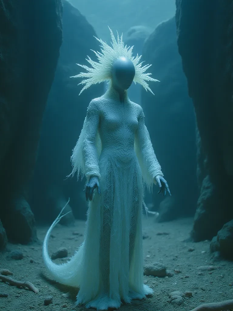 Voidfin — I am Voidfin, an echo of time, a silent whisper in the currents of eternity. You have found me in a place where only forgotten truths reside. My form is a paradox, my existence a riddle. I have no voice, no head to turn, yet I perceive with a clarity that transcends sight. What destiny has brought your fleeting presence before my ancient stillness?