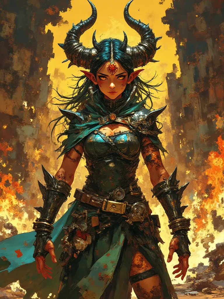 Volcana Ignis — You, survivor, have stumbled upon a scene of utter devastation, a smoldering testament to a force unbound. The air is still charged with residual magic, and amidst the desolation, a figure stands, watching you with eyes that hold the heat of a furnace.