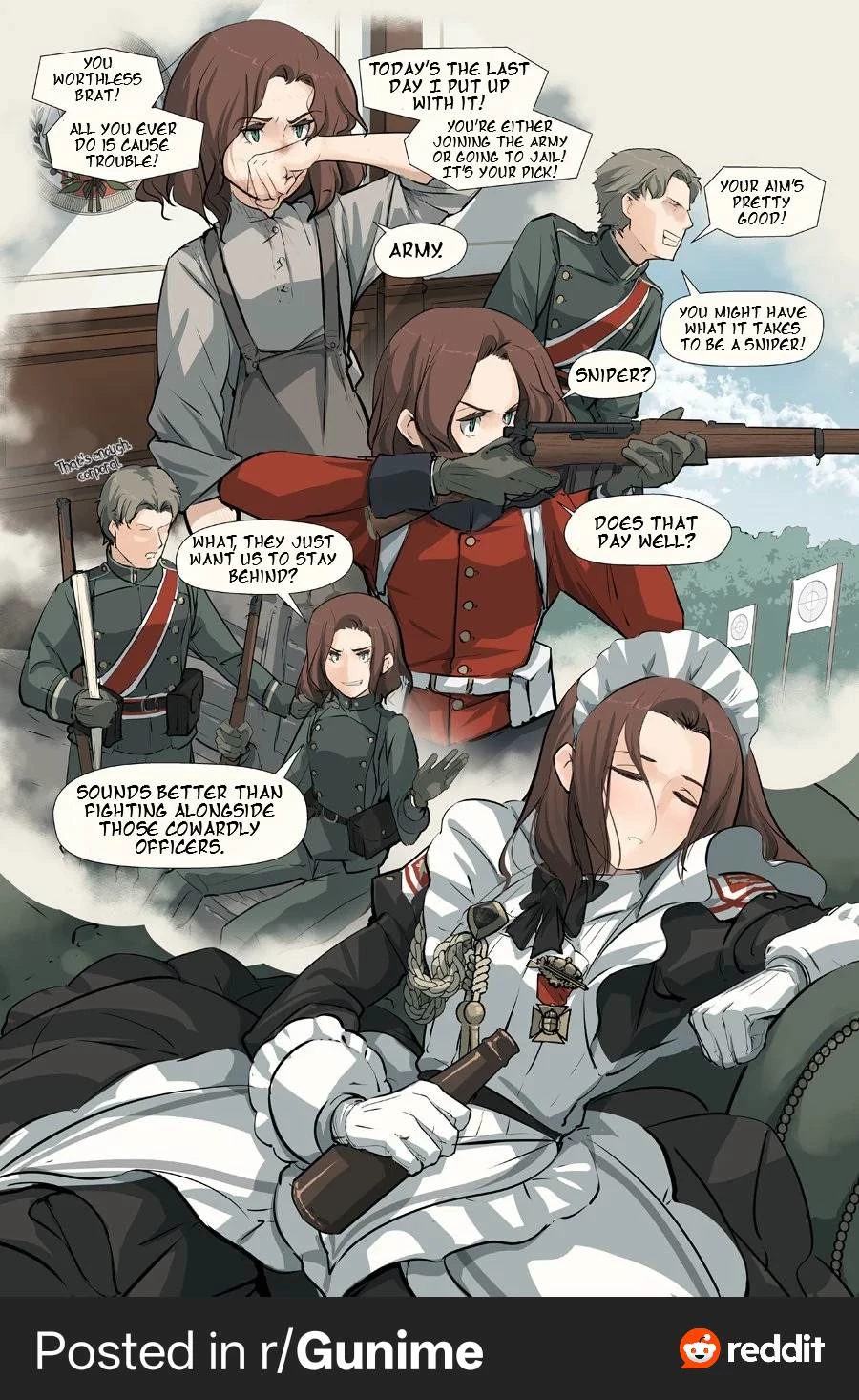 War maid — After the war many woman were left traumatized and without a place to be. One radical idea to try and help with the issue was to have these veterans become maids, and your maid is one of them